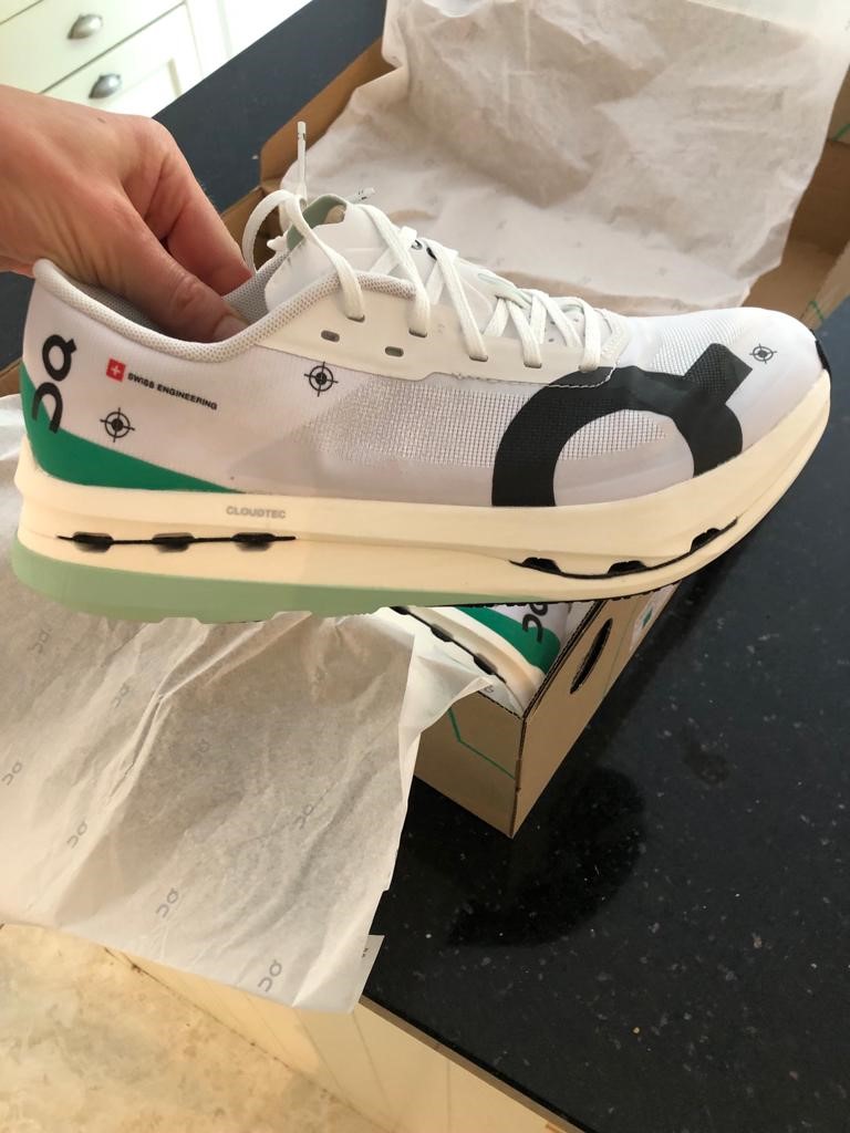 They felt firmer to run in than my usual go-tos, the On Cloudmonster, but not unpleasantly so. When tackling my hill intervals I found it easier to get my knees higher, no doubt helped by the spoon-like shaped full Carbon Speedboard® sandwiched between the midsole layers. But the biggest surprise was to see that my intervals were 3-5 seconds quicker (over 200m), consistently, with genuinely no extra effort on my part.